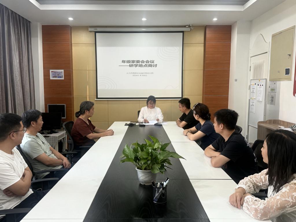 为确保研学活动科学有序开展,充分发挥家校协同育人作用,让研学地点既符合幼儿年龄特点,又能实现“研有所思、学有所获”的目标,2024年4月5日,恒通佳苑幼儿园年级家委会会议在园区会议室召开,年级组长、各班班主任及委会成员齐聚一堂,围绕研学地点选择展开深入商讨。