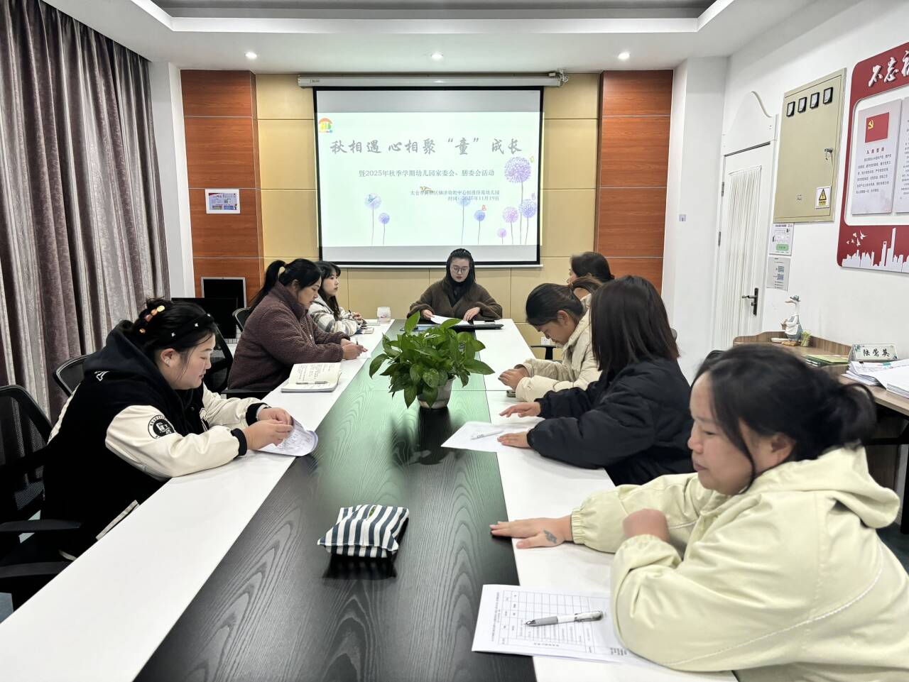 其次,会议围绕幼儿园即将开展的多项重要议题展开了深入讨论:是否扩大班级游戏区、整合空间设立专属午睡室;启动“幼儿生活习惯21天打卡”内容征集活动;面向家长开展第三届“悠悠节”和“金点子”征集,广泛吸纳家庭智慧。同时,通过家长课堂解读《学前教育法》,回顾日常安全检查,提升家园共育的法治意识与安全理念。