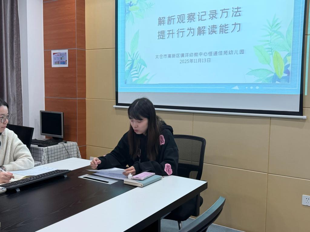 为精准捕捉科探区幼儿探究行为背后的发展需求,切实提升教师对幼儿行为的观察、记录与解读能力,为高质量师幼互动提供科学支撑,太仓市高新区镇洋幼教中心恒通佳苑幼儿园于2025年11月13日开展以“解析观察记录方法,提升行为解读能力”为主题的园本教研活动,活动由汪敏老师主持。