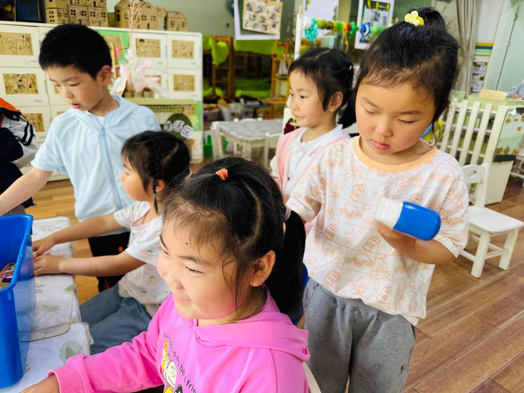今天孩子们在理发店的时候,铠铠在校客人来的时候,会根据自己去理发店的经验,问小客人,你们需要什么服务?而且在洗发的过程中,会根据自己的经验问小客人水温是不是合适,孩子们在进行角色游戏的时候,可以自己融入到角色里,并且知道自己什么时候要做什么事情,融合了自己的生活经验。丰富孩子们的生活经验,鼓励孩子们根据自己生活经验进行游戏。对幼儿游戏中的表现进行表扬,让孩子们更加积极参与。提供丰富的物品,比如理发店的洗发水、护发素等,让孩子们在参与游戏的时候有更多的情景感。