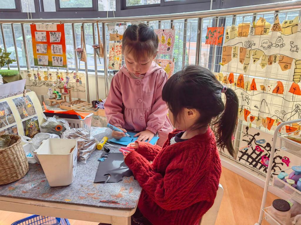《指南》4-5岁幼儿“能关注别人的情绪和需要,并能给予力所能及的帮助”。芯芯听到依依求助后主动询问需求,还协助完成猫头鹰翅膀的创作,既展现了友好的交往态度,也发展了关心、帮助同伴的社会能力。