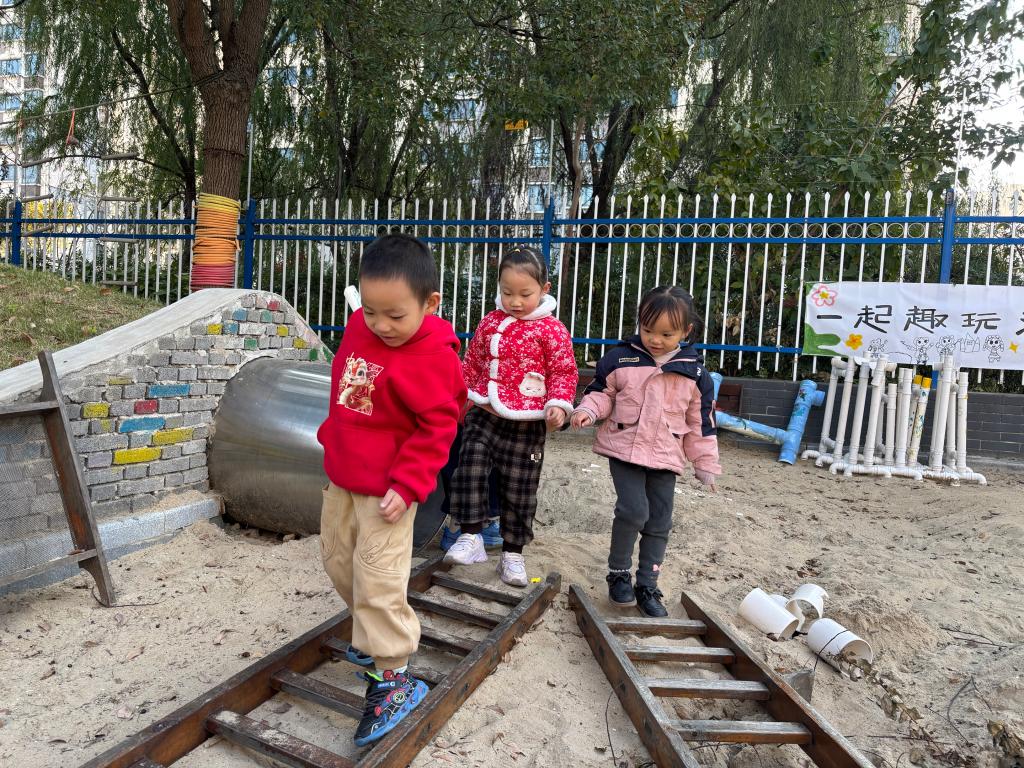 在后续的游戏中,教师可以提供纸板、软垫等不同材质的滑行工具,引导芯芯对比“哪种工具滑行更顺畅”;同时增加木梯的组合方式(如连接不同高度区域、搭配小平衡木),提升平衡挑战的层次性,进一步锻炼肢体协调与平衡能力。教师可以提出“设计安全滑行路线”的任务,引导芯芯和小伙伴讨论“木梯怎么铺更稳固”“滑行出口如何布置更安全”,鼓励他们分工(如“铺梯员”“试稳员”),提升合作规划与沟通表达能力。
